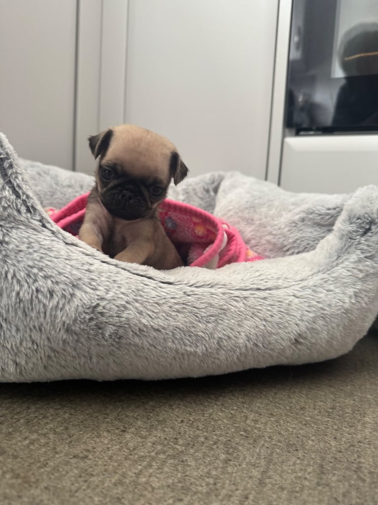 Hier ist mein wunderschöner Wurf Möpse. Mama und Papa sind unsere liebevollen Haustiere und können auch gerne besichtigt werden. Dies ist ihr zweiter gemeinsamer Wurf, und ich werde ein paar Fotos vom letzten Wurf posten.