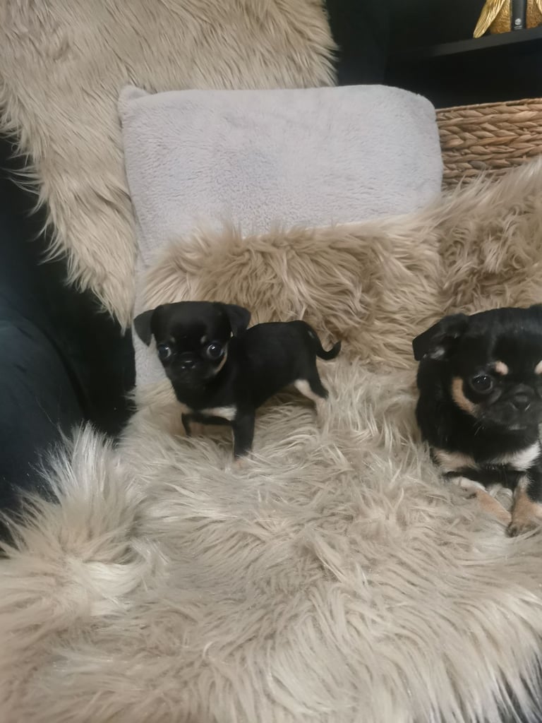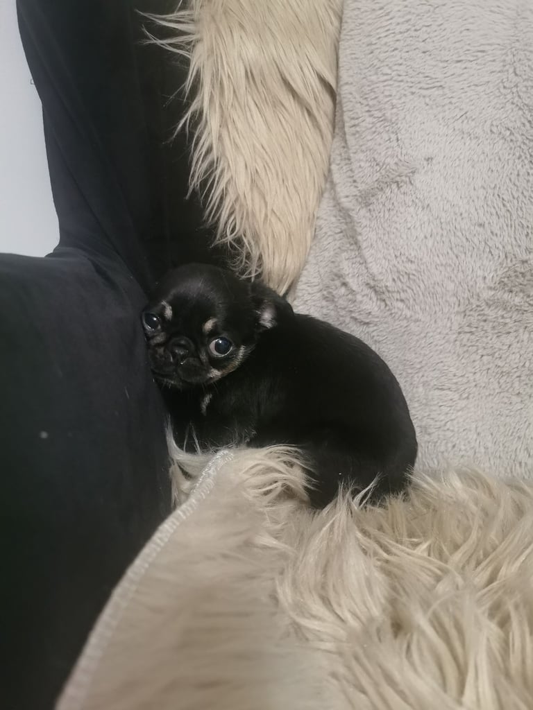 Die Welpen sind überwiegend Möpse; sowohl die Mutter als auch der Vater sind Möpse, aber ich würde sagen, dass der Vater, obwohl er Papiere hatte, ein Chihuahua-Mischling ist.