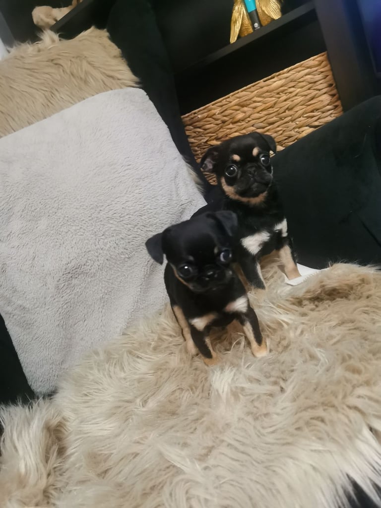 Sie sind alle schwarz-braun, die Hündinnen sind winzig … so klein wie Chihuahuas, sie passen in eine Handfläche. Deshalb brauchen sie ein besonderes Zuhause, denn sie bleiben kleine Hunde.
