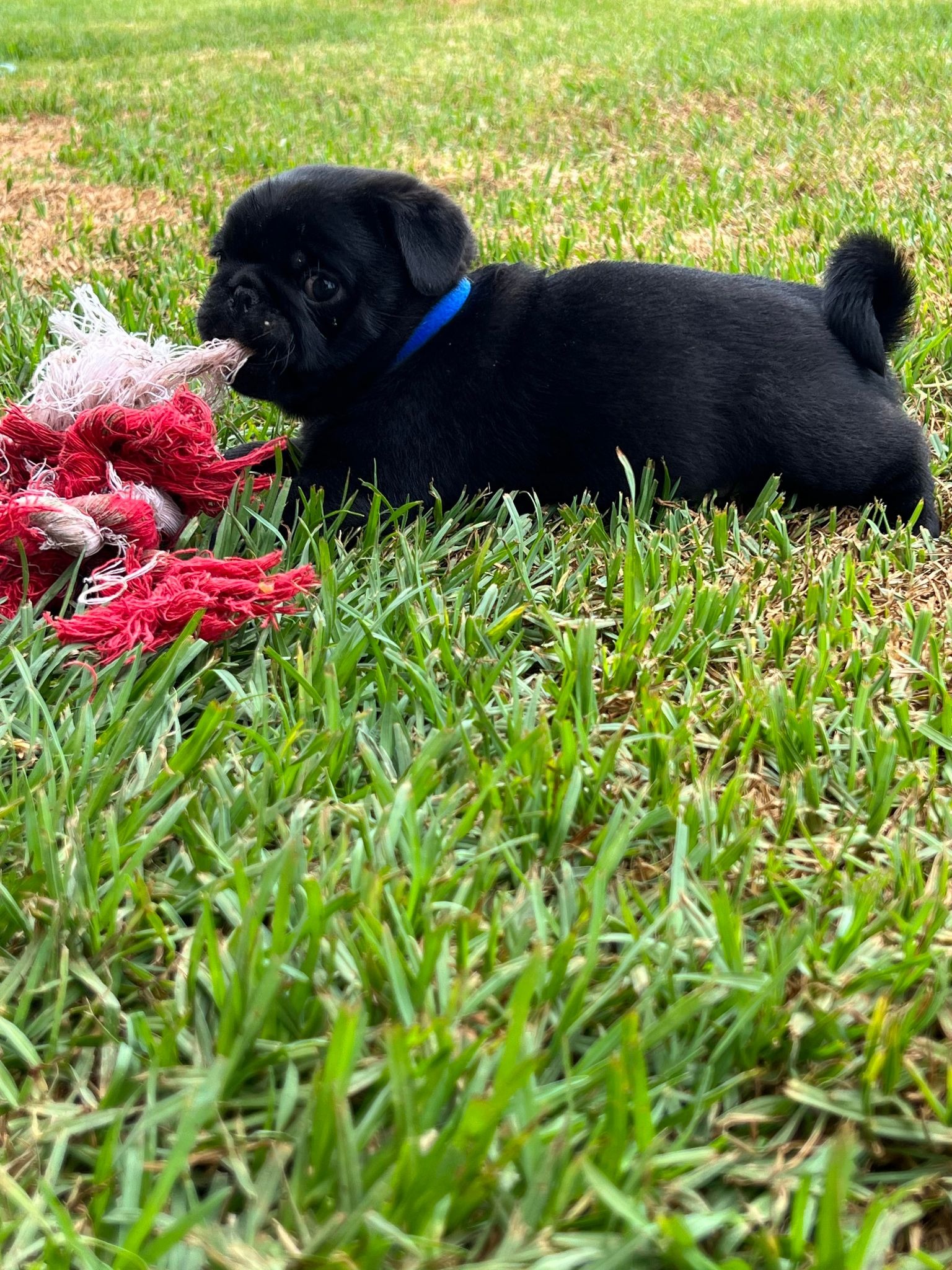 Reinrassige Mopswelpen, drei schwarze Rüden und eine schwarze Hündin, werden ohne Papiere verkauft. Sie sind entwurmt, geimpft und gechipt. Sie sind in einem familiären Umfeld aufgewachsen, haben mit dem Stubenreinheitstraining begonnen und sind gut mit Menschen und anderen Mopsen sozialisiert. Sie werden in einem anerkannten Zuhause gehalten.